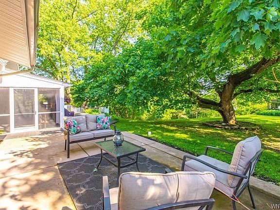 Wonderful ranch in a desired neighborhood. Beautifully renovated kitchen. Open dining and living room with vaulted ceilings, fireplace, large windows overlooking a screened in porch, large deck, and patio! Hardwood floors, 2 full baths and a large 2.5 car garage. A short walk to the village of East Aurora. Delayed Showing: Showings start at Open House on Saturday, June 8th, 11AM-2 PM.