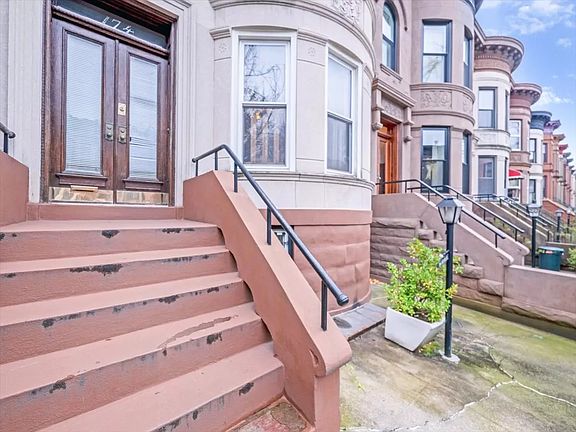 174 Rutland Road is a 20- foot wide Four Bedroom Two and a half Bath two-story gem which sits on one of the finest blocks within the historical Prospect Lefferts Gardens. It was built in 1910 as a one unit and has preserved the classic Romanesque charm that the turn of the century architects tactically imagined. The block, both leafy and magnificent, is a marvel of design. The combination of the characteristic details of Sandstone and brownstone, pristine skylights and crown moldings classically inspired by the Neo-Renaissance styles set this gem apart. The grand entrance of the parlor floor opens to a six-and a half foot-wide receiving foyer, soaring ceilings, pier mirror, fabulously carved all wooden newel post, and wainscoting. Additional wooden details, including original shutters and four original pocket doors, are gloriously intact. On this level, a twenty-eight-foot formal front parlor with a decorative fireplace, plus a dining or media room and a spacious kitchen. Throughout the home, inlaid parquet flooring especially on the parlor level are pristine and authentic. Upstairs, the larger two bedrooms connect by the early passthrough, dressing closet, and sinks. In keeping with the original design, the rear garden is accessed through the formal dining room, where there is parquet flooring, wainscoting, an exposed beam ceiling, and the 4th of the home's decorative mantels. Finally, this home contains a laundry room and an enormous rear kitchen is ready, with your vision, to take center stage! **Buyer to verify all information.