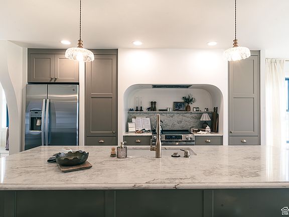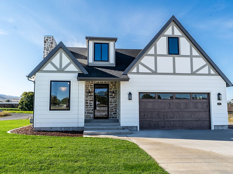 This Tudor-inspired, custom-built home-featured in the Top of Utah Parade of Homes-is packed with premium finishes, from high-end cabinetry and quartz countertops to quality flooring, premium appliances, and the thoughtful touches that make it truly special. From the moment you arrive, the elegant corner lot, striking arched front door, and beautifully designed entry foyer will captivate you. Inside, main-floor living offers both comfort and convenience, with the rock fireplace serving as the centerpiece of the open-concept living room. Every detail has been carefully curated, combining high-end craftsmanship with timeless style. Whether you're entertaining or enjoying quiet evenings at home, this residence offers the perfect balance of sophistication and warmth. Don't miss your chance to own a show-stopping home featured in one of the valley's most exciting home showcases!