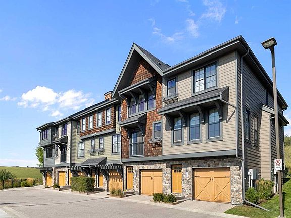 Open House October 4th & 5th from 1-3PM. Welcome to 174 Ascot Point SW—an immaculately maintained 3-storey townhome located in The Enclave at Castle Keep in the highly sought-after community of Aspen Woods. Built in 2013, this stylish and functional townhome is backing and fronting onto the ravine with serene views and added privacy. This home offers a thoughtfully designed floor plan perfect for professionals, couples, or small families seeking quality living on Calgary’s desirable west side. Walking into this home you will find your tandem double garage and foyer, as you head up the stairs you are greeted by an open concept kitchen, living and dining area with gleaming hardwood floors. Your gourmet kitchen offers quartz counters with an eat in breakfast bar, stainless steel appliances, completed with a private balcony with a gas line. Your south facing living area is flooded with natural light with ample area for entertaining and one of the rare units in the complex with a Juliet balcony. Completing this level is your discreet 2-piece powder room for guests. Ascend to the upper floor and discover two retreat-like bedrooms, each boasting its own ensuite for privacy—a luxurious touch seldom lost on those who appreciate thoughtful design. Between them lies an upper-level laundry area and a large storage closet. Just steps away you have access to an endless amount of walking/biking paths, Calgary's top ranked schools, shopping, dining and more!