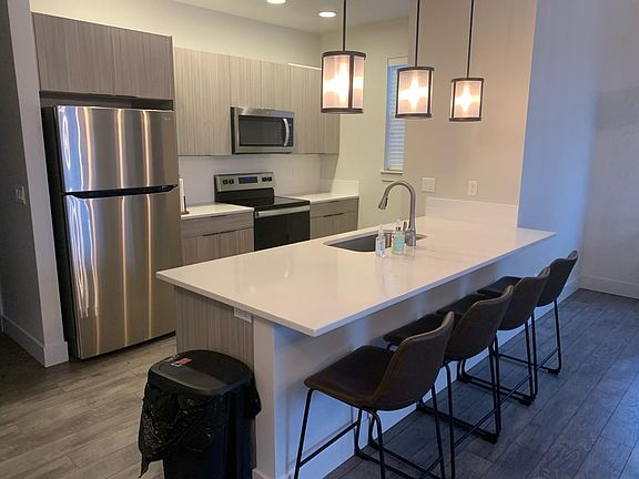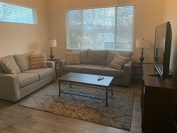 FURNISHED, short term lease available ($2200 for 6 month minimum, shorter lease possible with increase in rent price). This is a newer 4-plex in an incredible location in downtown Eagle Idaho. Walking distance to Albertsons, professional offices and restaurants. Two bedroom, two bath, master closet, covered parking. Furnished with sofas, tv, dining table and chair, barstools, queen bed, full bed, desk, most kitchen needs, washer/dryer in apartment. Great design with vaulted ceilings, lots of natural light, plenty of storage, 2nd floor unit with deck. No smoking, no pets. Renters pay electric, and cable/internet. Owner pays sewer, water, garbage. Appliances, including washer and dryer. One designated parking spot under cover, one additional car allowed for open parking spots. Please apply through Zillow. Must be able to show steady job with appropriate income for this rental category, and references.
