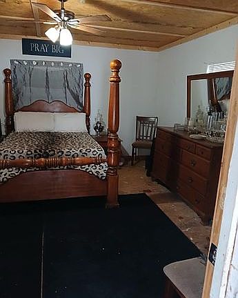 I love how peaceful it is here — just one street away from the lake. The cabin-style design gives it cozy country charm, and the big covered porch is perfect for morning coffee or relaxing evenings. It’s a quiet spot with great potential for a lake getaway or flip project.