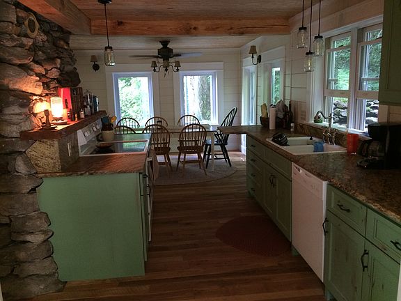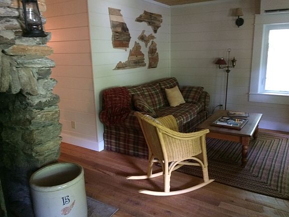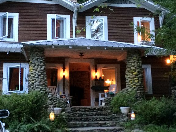 Beautiful completely renovated cabin in Chimney Rock. Set back from the road with view of the river. Quiet street in the woods. New custom kitchen. Stone fireplace with wood burning stove. Open floor plan, with hardwood floors throughout the entire house. Built in the 1920's, full of charm and character. Downstairs has an open floor plan with large living room, dining room and kitchen. Also a full bath with shower. There is a side deck, covered front porch and side patio for outdoor entertaining. Upstairs has 3 bedrooms, large storage room and bathroom with claw foot tub. House is fully air conditioned. This unique home is waiting for the next person to make it home. The house is partially furnished . Pets, unfortunately not allowed. This is a no smoking home or property.