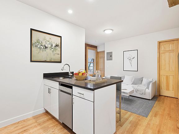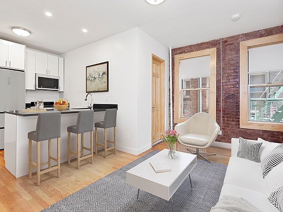 RENT STABILIZED! Gut renovated 1BR in a well-kept walk-up building .The open kitchen has a peninsula with stainless steel appliances including dishwasher and granite counter tops. The exposed brick gives this apartment a warm feeling and the eastern sunlight brightens up the space. A must see. Photos are virtually staged. Access only during open house.