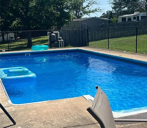 Beautiful ranch-style home with county taxes and all the right features for comfort, entertaining, and storage! Spend your days by the 16x30 in-ground pool with a gradual 4–10 ft depth, surrounded by a privacy fence and plenty of space to relax. The fenced backyard includes two storage buildings (one wired) and a two-car garage, offering endless options for hobbies or workspace. A circular driveway provides ample parking for guests, boats, or RVs. Inside, enjoy three bedrooms on the main level and a partially finished basement ready to customize as a game room, gym, or media space. The updated Goodman HVAC unit (installed last year with a 10-year warranty) ensures comfort and peace of mind. With great space inside and out, this home is a true retreat—move-in ready and waiting for you!