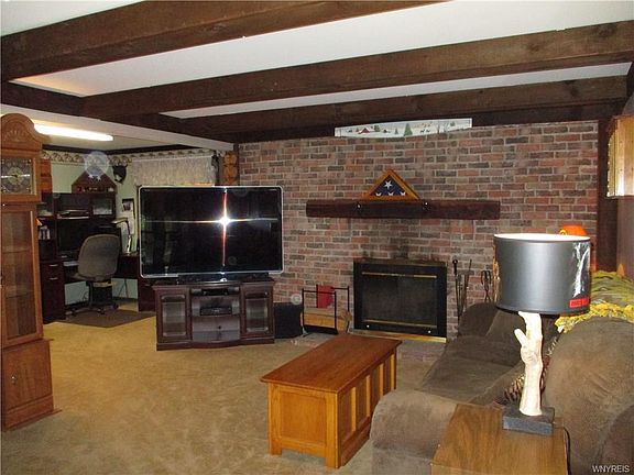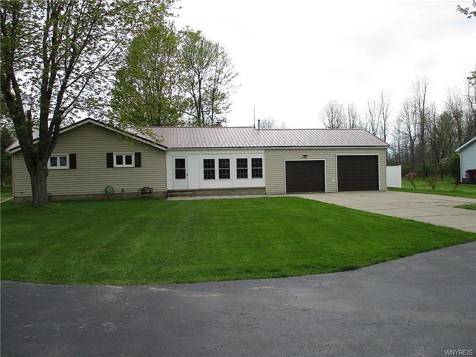 Well maintained 3 BR, 1 Full bath Ranch home on a beautiful private wooded lot. Hardwood floors under like new carpeting in Living/dining and all BR. Living room features beamed ceilings & wood burning fireplace. Formal dining room. Kitchen w/ solid surface counters & pine cabinets opens to the 30 x 16 4 season sun room that is heated w/wall furnace '15. Steel roof & Gutters '11. Newer vinyl windows. New electric Service '06- Sub panel in garage. Fiberglass entry door & Steel rear door '15. Whole house has blown in & spray foam insulation. High efficiency furnace and A/C '15. Attached 2.5 heated garage. All insulated garage doors '13. 20 x 20 carport w/ concrete floor. 20 x 40 garage w/ stone floor & electricity. 4 camera security system w/DVR monitor .