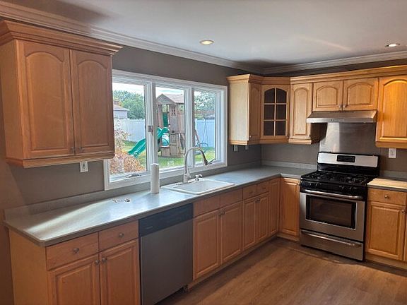 3 Bed/1 Bath Ranch with Fireplace and open floor plan. Laminate flooring throughout. Featuring a wood burning fireplace, kitchen with new stainless steel appliances, washroom with in-unit washer/dryer. Neutral paint colors throughout and lots of storage available including storage shed, 2 car garage and street parking. 3 bedrooms and an updated bathroom are perfect for your growing family. Spacious fenced-in yard with play set will be a hit with your kids. Small pet allowed.