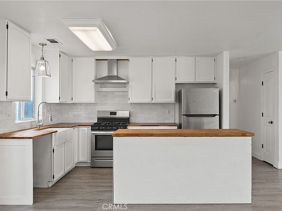 Get ready for something truly special! This updated 3-bedroom, 2-bath home exceptionally blends character with modern updates. The updated kitchen showcases warm butcher block countertops, crisp white cabinetry with glass panels on the island, a classic subway tile backsplash, and a charming farmhouse sink. The stainless steel range and sleek range hood add a contemporary touch to this stylish space.