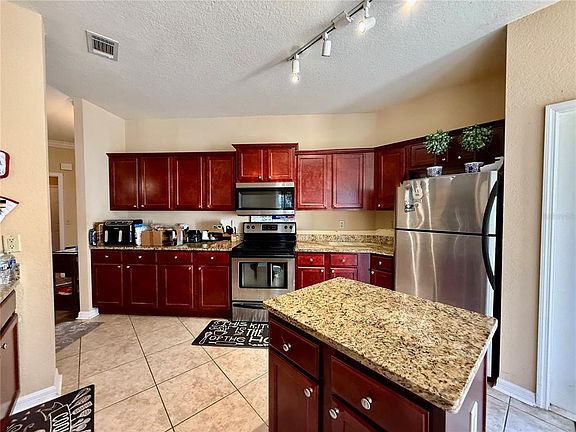 Upgraded granite countertopsScreened-in porchGourmet kitchenStainless steel appliancesAbundant cherry-stained cabinetry