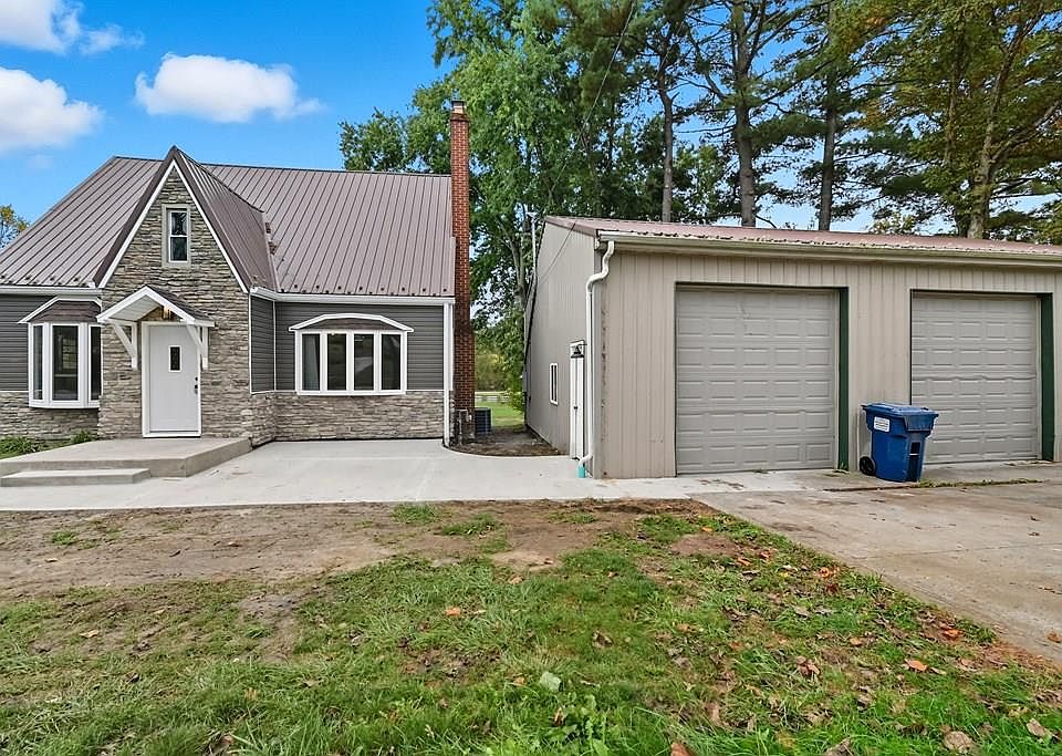 Beautifully updated Cape Cod in Lucas! This charming 3-bedroom, 2.5-bath home sits on over half an acre and offers 1,352 sq. ft. of refreshed living space. The partially finished walk-out basement includes a full bath, providing additional living area and flexibility for guests, recreation, or a home office. A spacious 4-car garage offers ample room for parking, storage, or hobbies. Recent updates include a new roof, electrical, plumbing, drywall, and more—giving you peace of mind and a truly move-in-ready feel. The main floor features a convenient half bath and a first-floor bedroom for easy living. Enjoy new concrete in front and a back deck overlooking the large backyard—perfect for relaxing or entertaining. Ideally located on the main road leading into the village and just minutes from I-71!