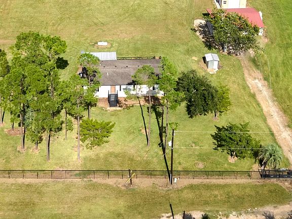 Welcome to this exceptional 4-acre ranch, secured by a remote-controlled metal gate. The property showcases a stunning covered pavilion complete with a built-in kitchen, brick fireplace, and expansive concrete patio—perfect for year-round entertaining and gatherings. A detached 4-car garage/workshop with dual oversized roll-up doors provides abundant space for vehicles, storage, or equipment. Completing this remarkable property is a spacious 2003 double-wide mobile home offering 4 bedrooms, designed for comfortable and relaxed country living.