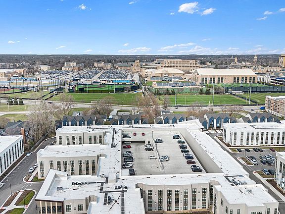 #302W - Introducing the New & Expanded Irish Quarter – Luxury Condos Steps from Notre Dame! Irish Quarter is growing with an additional condo building with first floor retail space! This premier condo development blends modern elegance with an unbeatable location - you're practically living on campus in a vibrant community. This 3 bedroom, 2.5 bath unit boasts expansive windows that flood the space with natural light. Enjoy a very functional and expansive great room with cozy gas fireplace and a slider to the sprawling terrace with Golden Dome views! You'll love the sleek kitchen with quartz countertops, large island with waterfall countertops, stainless steel appliances, walk-in butler's pantry, and beverage bar with bev fridge. Primary bedroom wing offers private sleeping quarters separate from the large walk-in closet and bath. 2 additional bedrooms share a full bath. Large in-unit laundry room. This is a perfect spot for game day or year-round living. And for the ultimate in luxury, residents can retreat to the expansive rooftop deck and party room in Irish Quarter East. Take in breathtaking views of Notre Dame Stadium, Touchdown Jesus, and the iconic Golden Dome. No short-term rental restrictions! One reserved parking spot in parking lot. HOA includes: Snow Removal, Landscaping, Access to rooftop and party room.