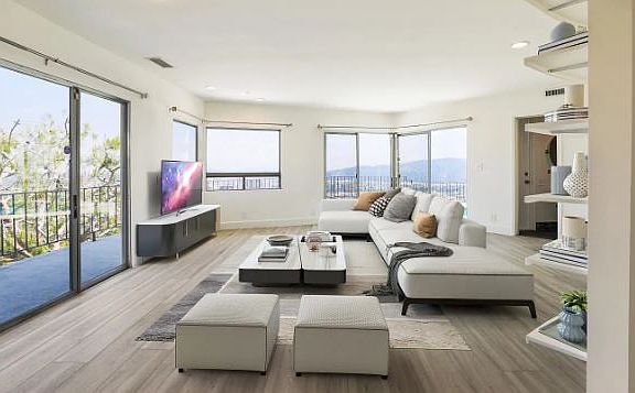 Fully Furnished Mid century modern luxurious home with unmatched panoramic views. Located in one of the most sought after areas of Glendale, this oasis in the hills has a gated private driveway with a spacious 2 car garage. It features 3 bedrooms, 3 full baths, and two additional half baths. Views from every room set up a beautiful backdrop for your day and the nighttime skyline is breathtaking. Enter the backyard through double glass doors and enjoy the pool deck with 270 degree unobstructed panoramic view of Glendale, Downtown L. A. and surrounding mountains. A spacious remodeled kitchen with new appliances opens up to a large family room. This home is an entertainers dream! High end posh Glendale living at its finest! 12 month lease owner pays gardener and pool man