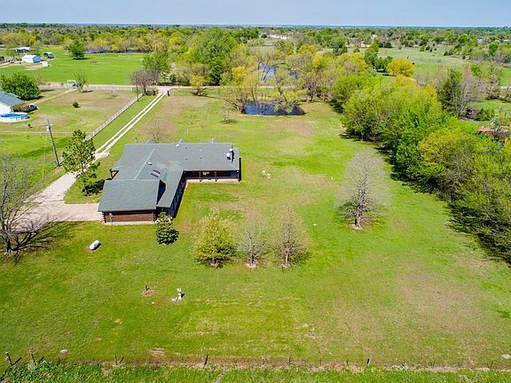 Custom Satterwhite Log Home with wrap-around porch & pond on 5 acres only 40 minutes from downtown Dallas! Open floor plan boasts a HUGE living room with a wood burning stove & surround sound speakers. Island Kitchen features a recently installed Blanco farm sink with custom sprayer & soap dispenser, KitchenAid 6 burner gas cooktop, large walk-in pantry & double oven. Master Suite offers separate vanities, garden tub, separate shower, walk-in closet with built-ins & private access to the back patio. Huge utility room with built-in cabinets, sink, 2nd pantry & room for a freezer. Oversized garage plus extra parking pad off the driveway & 36'x23' workshop. Freshly stained exterior. No HOA & no restrictions.