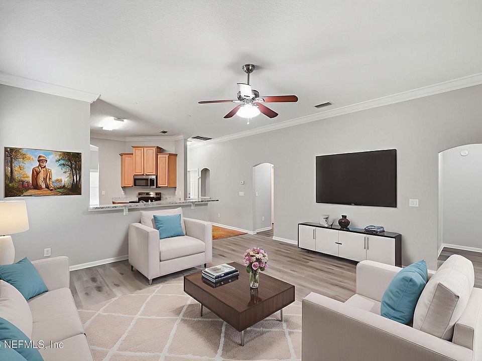 Located in the Royal St. Augustine Golf & Country Club community, this well-cared-for home features an open floor plan with a separate dining room, luxury vinyl plank flooring, granite countertops, stainless steel appliances, and abundant kitchen storage. The spacious primary bedroom includes a large flex space—perfect for a home office, sitting area, or workout nook. Living areas flow naturally to a screened back patio overlooking a peaceful pond, creating an inviting space to relax or entertain. With 3 bedrooms and 2 baths, the home offers comfortable, easy living and thoughtful updates, including a roof replaced in 2022. Royal St. Augustine is a well-established neighborhood known for its convenient location just minutes from historic downtown St. Augustine, local shops, restaurants, and the area's beautiful beaches, with quick access to both I-95 and US-1.