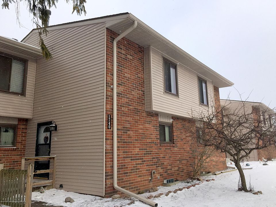 Lifestyle, location, affordability, comfort and convenience - that's part of what this 1740 Maple Ridge townhouse condo has to offer. Build equity and experience the joys of home ownership in this two bedroom, one and a half bath townhouse with pond view from your own private patio. Windowed kitchen could have eat in area, or dining area in "L" shaped living room. Newer slider offers great view. Attractive laminate flooring on main and in basement family room. Two spacious carpeted bedrooms with large closets and full bath upstairs. Features include plenty of storage, laundry room with newer washer and dryer, workshop area - and a carport. Low association fees and Meridian Township taxes. Schedule your showing today and move in before Spring!