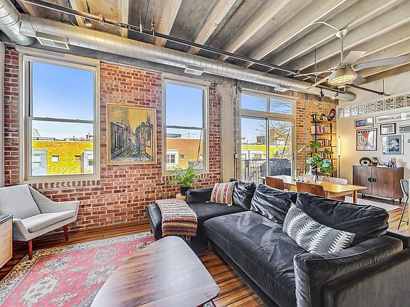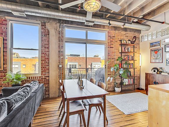 Sunny and spacious split 2/2 in popular Buck City Lofts! Brick and concrete true loft charm w/ high ceilings, fully enclosed bedrooms w/ massive windows in both, and charming views of the 606. Gleaming wood floors and lovely updates throughout this home. All white and stainless kitchen w/ huge island. Second bed has murphy bed, great as a guest room/ office. Beautiful natural light pours in this home from an oversized wall of windows in each room. Storage located on the same floor and exterior, gated parking are included in the price. Building has a common roof deck w/ 360 views! Fantastic location along the 606, great access to the Blue Line, parks, 90/94, and all that Bucktown/ Wicker Park/ Logan Square have to offer!
