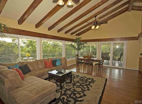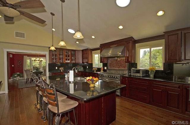 Completely Private, Secluded, Custom Built Family Home on 3/4 acre with forest like view. Lovingly cared for and meticulously upgraded over the years, this home features two spacious master suites, 2 secondary bedrooms and equally spacious updated bathrooms. This home features wood flooring all throughout. The expansive kitchen space is custom fitted with granite counters. The kitchen island anchors the space with pendant light accents. Equipped with high quality Viking double door, stainless steel refrigerator and matching heavy duty Viking stove, oven and range. Plenty of storage space. Relax in the formal living room accentuated with a fireplace on a raised hearth and copper hood. Formal Living room space is surrounded by full sized double pane windows and French door that extends into a newly added wrap around viewing balcony, adorned with artistically designed Iron works. The second level offers comfortable spacious seating and lounging in the Entertainment/Family Room. Additional counter space accommodates more decor and storage. The massive backyard allows for plenty of playground and recreational space. High ceilings, durable wood beams, open spaces, tranquil views, quality upgrades best describe this home. Come and visit, and make it all yours.