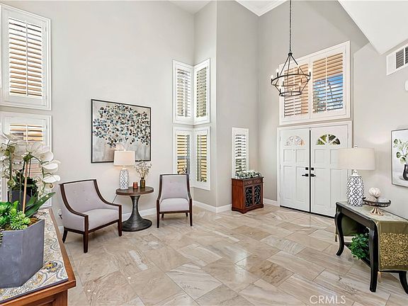 >>> This home is TRULY special and something you MUST see for yourself to believe. <<< This beautifully upgraded Lake Hills residence gives you the feel of a Pottery Barn showroom and showcases some of the best panoramic views of Lake Mathews that Lake Hills has to offer. With 4 bedrooms, 2.5 bathrooms, and 2,089 SqFt of refined living space, this home blends comfort and sophistication in every detail. Step inside to a dramatic entry where sky-high ceilings, crown moulding, and wide-plank baseboards frame textured travertine flooring and soft modern grey walls bathed in natural light. The kitchen is a true showpiece, featuring stainless steel LG Suite appliances, granite countertops, soft-close cabinetry, and a stylish backsplash all opening to the family room anchored by a stacked-stone fireplace and expansive lake views that will WOW! even the most discerning critics. Upstairs, the primary suite offers a peaceful retreat with its own breathtaking view of the lake -- imagine waking up to that every morning!! -- a walk-in shower, and a jacuzzi tub perfectly positioned against the window to “soaking those views”. Additional highlights include new carpet with upgraded padding, plantation shutters, Milgard double-pane windows, a QuietCool whole house fan, recessed lighting throughout, and a roof tune-up that was conducted in 2023. The backyard invites relaxation with an in-ground jacuzzi accented by color LED lighting, while stucco privacy walls ensure a serene outdoor escape. This Lake Hills home captures the perfect balance of elegance, comfort, and California living—with views you’ll never tire of. Nestled on 750 acres, Lake Hills provides a serene mountaintop retreat near Riverside’s cultural and educational offerings as well as shopping. Residents enjoy the vast open spaces, top-tier Lake Hills Elementary, parks, playgrounds, picnic areas, and a basketball half-court. The HOA also includes maintenance of the extensive common grounds as well as an evening security patrol. Perfect for commuters, with easy access to the 91 Freeway and Metrolink.