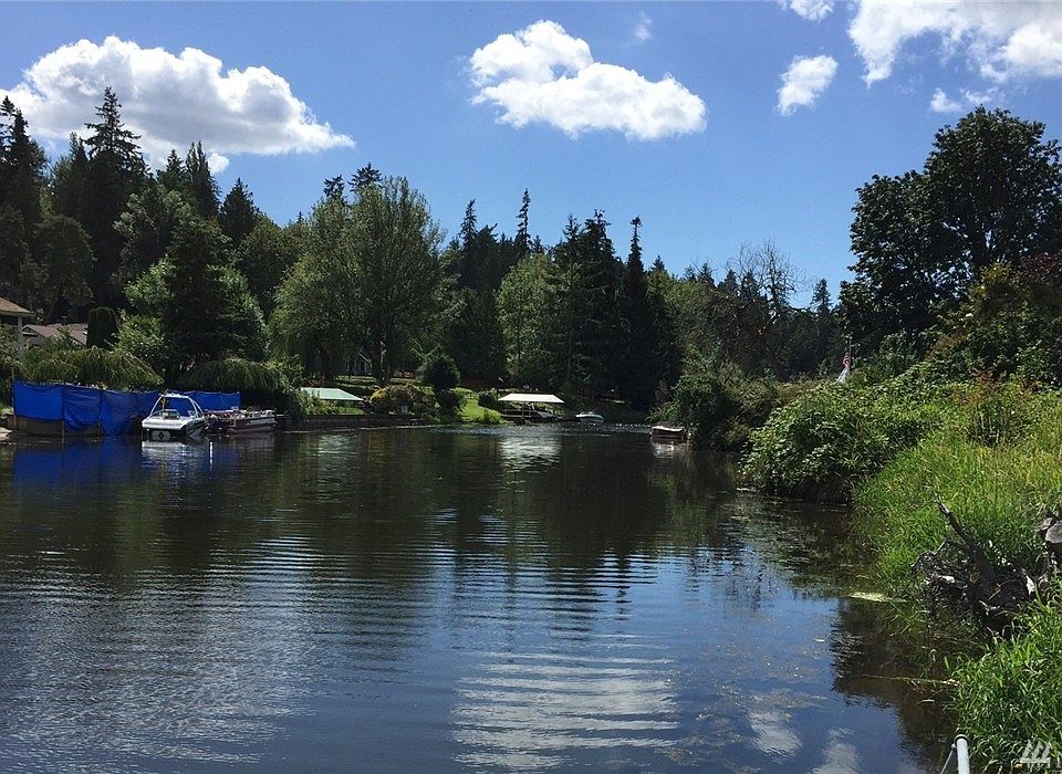 Outstanding, hard to find level, cleared, level waterfront lot on Sammamish River. 80' low bank riverfront. End of paved cul de sac. One block off Burke-Gilman trail. Easy commute access. Heart of Kenmore close to shopping. Water meter on the property (not connected), sewer and electric in street at corner of property. Ready to build! Dock belongs to neighboring property.
