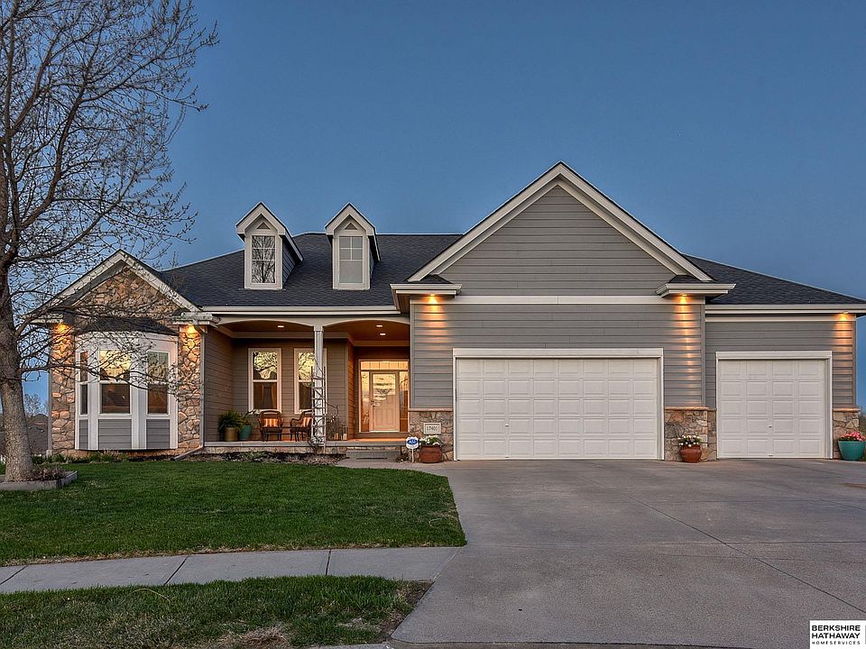 Contract Pending On market for backup offers only. Welcome home to stunning views, luxurious design, & ample living space w/ this 4 bedroom, 4 bathroom walkout on a culdesac. Upon entering, you will be greeted by a spacious living room w/ large windows that allow natural light to flood the room. The gourmet kitchen features granite countertops & eat in bar. The adjacent dining area offers stunning views of the backyard w/ the most amazing Omaha views - perfect for hosting family gatherings. The finished walkout basement offers a large family room & plenty of space for game tables & entertaining guests. Luxurious primary bedroom, complete w/ a spacious en-suite bathroom that boasts a double vanity & tile walk-in shower. The walkout basement leads to an expansive .54 acre backyard, complete w/ a private patio area, overlooking an urban gardener's dream, w/ plenty of space for a garden & outdoor activities. Just a short drive from shops, restaurants, & entertainme