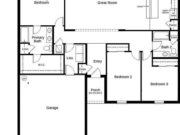 Large pantrySplit-bedroom layoutGranite countertopsGarden tubTile flooringExtended dual sink vanityLinen closet