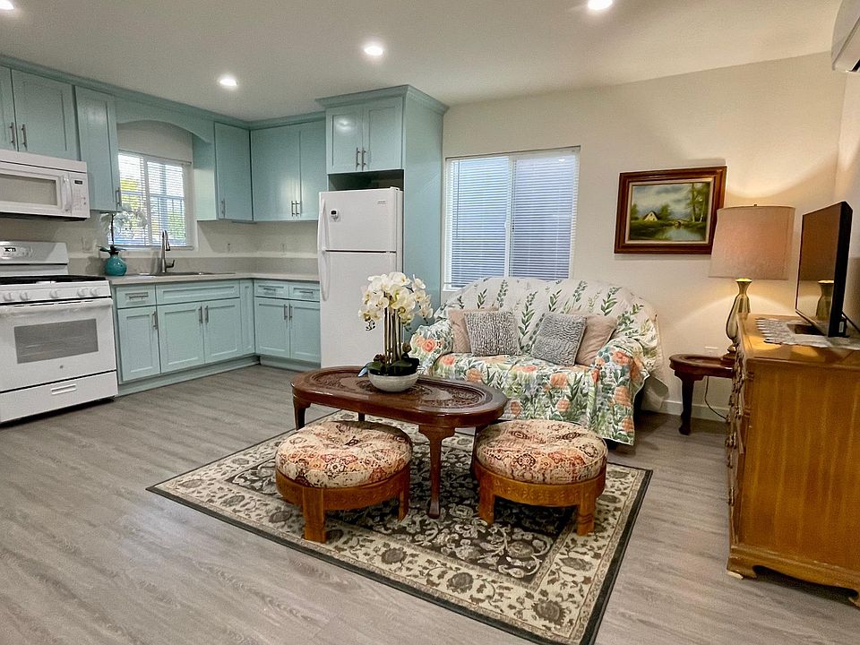 Fully gated detached 2 BR and 1BA guest unit located in prime Granada Hills. Property is completely renovated, featuring newer kitchen with all appliances included: refrigerator, range and microwave, new flooring throughout, spacious living room leading to 2 bedrooms and updated full bathroom. Other amenities are : new washer and dryer, 3 individual wall HVAC systems and recess lights. Back patio offers mature landscaping, fruit trees and ample space for family gathering and relaxing. Must See! Owners pay for gardening and property taxes Tenant pays all utilities, internet