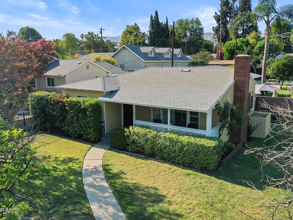 OPEN HOUSE HAS BEEN CANCELLED. Welcome to 17403 Los Alimos Street. This beautiful sprawling ranch style property located in Granada Hills offers 3 bedrooms, 2 baths with 1,459 sq ft of living space PLUS a fourth bedroom conversion, on a spacious 9,467 sq ft lot. As you enter the front gate, you'll immediately notice the large front yard and cozy porch at the entrance to the home. Inside, you'll find real wood flooring and an inviting family room with a beautiful oversized window and brick fireplace standing as the centerpiece of the room. The kitchen features tile flooring, quartz countertops with subway tile backsplash, newer stainless-steel appliances and a dine-in eating area. There are plenty of windows throughout the house, offering an abundance of natural light. The sizable master bedroom features wood flooring and plenty of closet space. The secondary bedrooms offer double windows and wood and carpet flooring. One of the secondary bedrooms is oversized, providing plenty of options. The bathrooms feature tile counters and an abundance of space. The breezeway between the main house and the garage has been enclosed to offer a fourth bedroom, with direct access to the home and side yard entrance. The entire property is adorned with plants and trees throughout, providing plenty of privacy. There is a large, oversized driveway with private gated entrance, which also leads to the gated pool area. Additional upgrades to the home in the last three years include a new roof, new HVAC system, ducts and thermostat and a new pool motor. Hurry, this one won't last long!