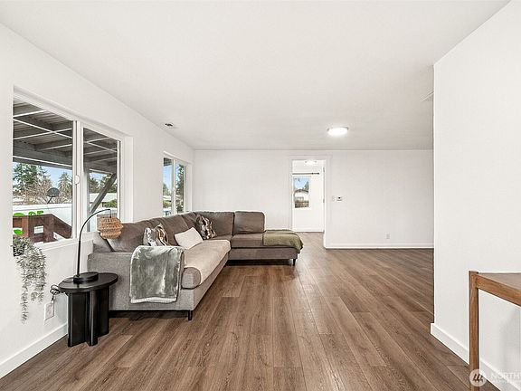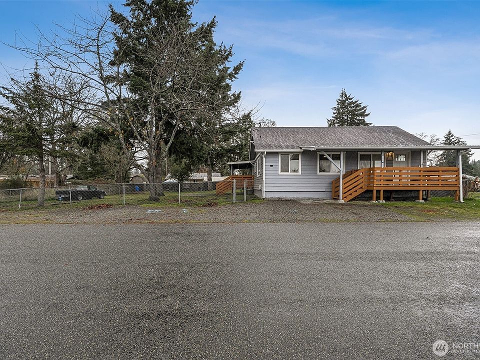 Remodeled & refreshed rambler on 12,500 sf double lot! This house sits on a generous, level 7,500 sf lot & right next door is a 5,000-sf lot that could be a great investment opportunity is ready for your imagination! Major updates in 2021 include new roof, new siding, new double-pane windows, new water heater, fresh exterior paint & updated millwork. The spacious living room flows into the dining area W/slider to back deck. Gourmet kitchen boasting quartz counters, white soft-close cabinets/drawers, & SS appliances! 3 bdrms & 1 full bath W/updated vanity. New interior paint prior to listing. Charming, covered porch, spacious deck, room for RV/boat parking & NO HOA. Close to JBLM, Shopping, & Entertainment. Call LA about VA Assumption terms.