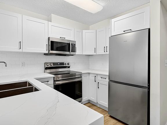 Fully renovated kitchenStunning new cabinetryBeautiful quartz countertopsDramatic waterfall edgeBrand-new vinyl plank flooringFreshly painted wallsMatching quartz counters