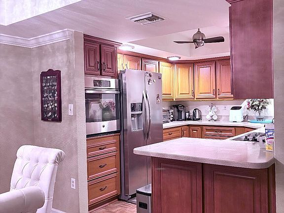 Courtyard facing larger condo. This spacious 2-bedroom, 2-bathroom residence with an additional den offers comfort, functionality, and resort-style living in the desirable Heritage community. Enjoy a north-facing courtyard with stunning views, perfect for relaxing or entertaining.The updated kitchen features sleek cabinetry, cooktop stove, refrigerator, wall oven, built-in microwave, and dishwasher. Crown molding throughtout.The large primary suite includes a double vanity, walk-in closet, make-up area, and linen closet. The guest bedroom and bath function as a second primary suite providing ideal space for visitors. The versatile den is perfect for a home office, hobby room, or reading nook.Additional conveniences include an exterior laundry area off the balcony, a separate storage room. Gated community with assigned parking with golf cart space, and a private shed.