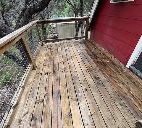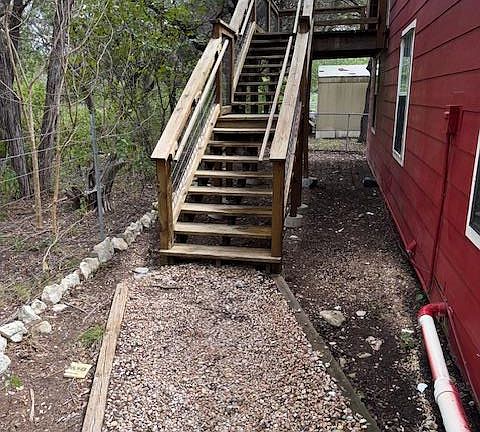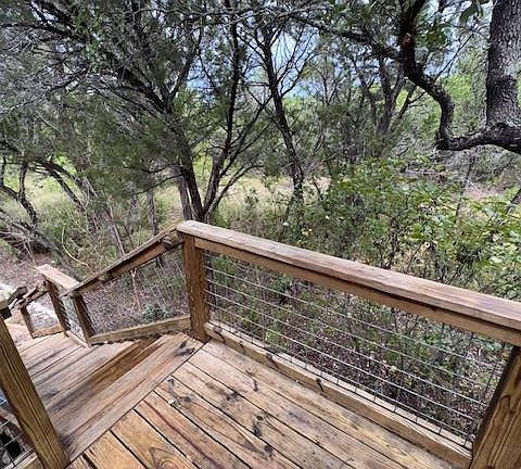 Very cool, very cute efficiency apartment in the trees! Great deck with a view of the woods and very private. Freshly painted. Vinyl plank flooring throughout. The large bathroom has a washing machine and a walk-in shower. Cathedral ceilings. Kitchenette with a range and full-size refrigerator. Water and trash are shared with the downstairs tenant. A 1-car detached garage is available for $125 a month. Great area. You are about three blocks from the neighborhood park on Lake Travis.