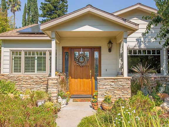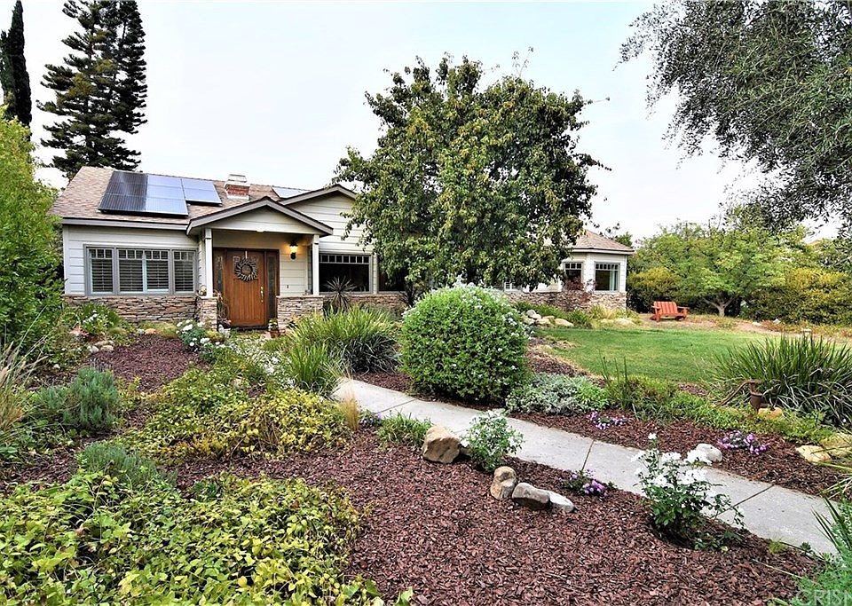 Amazing 1 story, custom craftsman in Old Granada Hills. Excellent curb appeal w/ stacked stone, totally redone & expanded to nearly 2,500 sf in 2006. Lg corner lot nicely landscaped w/ charming English garden & covered front porch. Many features including custom, high-end, Kolbe & Kolbe windows thru-out. Formal LR incl's recessed lighting, hardwood floors, & hi-lighted by wood-burning FP w/ elegant mantle. Galley-style kitchen incl's double wall oven, gas cooktop, stone tile floors, & open pass-thru to FR w/ high ceilings & twin French doors opening to backyard & coordinating windows above ample natural light. Lg pantry w/ butcher block countertop & x-tra storage. Breakfast rm just off kitchen incl's built-in banquette. A ¾ bath showcases Walker Zanger marble countertop w/ dual sinks & glass-enclosed, walk-in shower, while a full bath showcases sleek, stone countertops & shower/tub combo. 3 good-sized bedrooms have plantation shutters + spacious master features vaulted ceilings, walk-in closet & lux en-suite bath w/ corner, jetted soaking tub & walk-in shower w/ double shower heads & dual sink vanity. Highlights: sewer line (2006), tankless water heater (2017), standing attic w/ skylights, detached studio/office (non-permitted) w/ electric & wall AC, & leased solar ($107/mo) - utilities avg $11/mo! Backyard is perfect for outdoor entertaining w/ mature fruit trees & flowering plants. GH Charter HS District. Convenient to shops, restaurants, & nearby access to 118 & 405 fwys.