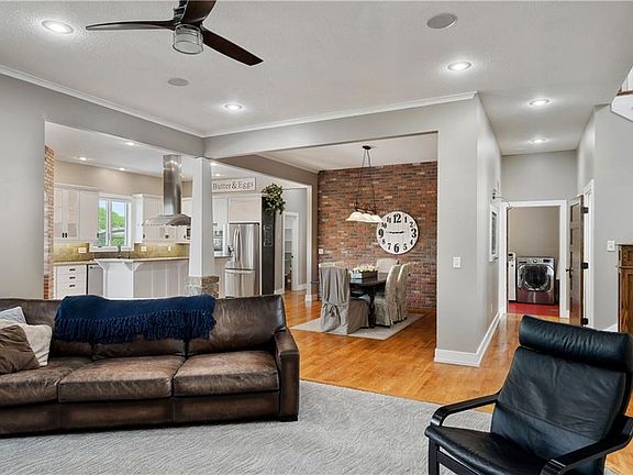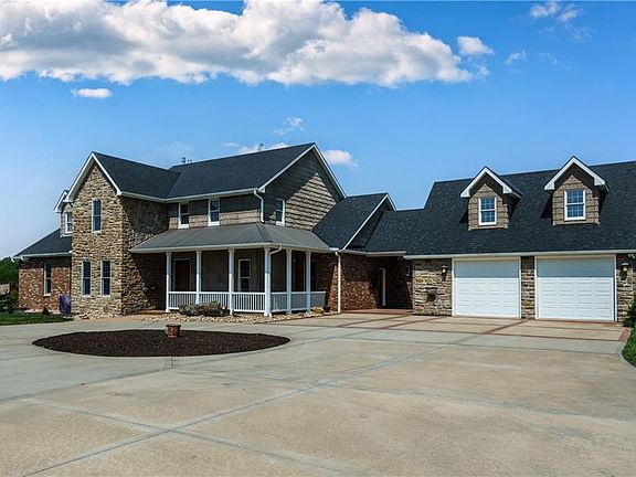 Welcome to 17405 South Ridgely Road, Smithville, MO 64089. This luxurious 6000 sqft estate offers you the best of both worlds; a quiet country setting with all the amenities of modern city living. Situated on 10 rolling acres, this home is sure to captivate your imagination and leave you feeling refreshed and relaxed. This beautiful 5 bedroom, 5.2 bath home offers an abundance of features sure to impress even the most discerning buyer. As soon as you arrive at this idyllic property just off a paved highway, you'll feel right at home in its warm atmosphere and peaceful surroundings. The main level includes an open concept kitchen with granite counters, island with seating and built in eat-in booth seating - perfect for hosting dinner parties or events! You'll find premium appliances throughout. Owners suite offers large room with fireplace, private walkout to pool patio. Owners bath ensuite includes luxury heated flooring in both the bathroom floor and shower floor with separate controls for each - adding comfort while providing convenience at its finest! A bonus room is tucked behind the private bathroom where you'll find entry to a private walkin closet. An attached garage offers additional storage space along with suspended garages below plus a metal carport outside for even more places store away items when needed . And if outdoor entertainment is what you're looking for; relax outdoors under your screened porch or take full advantage of your cool and comforting saltwater pool (brand new liner)! Don't miss the exterior entry pool bathroom. Last but not least , head downstairs into basement where you will find theater room equipped projector screen riser seating - experience movies like never before! Plus whole-house sound system allowing music to follow throughout entire house wherever go . To top it off the basement is finished with large recreation & family rooms, full kitchen with bar, full bath & a nonconforming 6th bedroom.