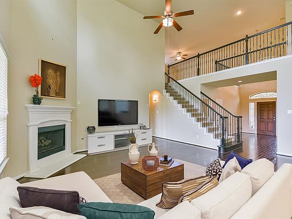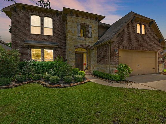What a location and rare find! Premiere lot that backs up to great walking area w/the added privacy of no back neighbors and direct access to this oasis retreat! This home offers so many amazing features that include: stone & brick elevation, covered front porch, beautiful hardwood floors, double crown molding, stone fireplace, butlers pantry, nest thermostat, nest exterior cameras, sprinkler system front & back, large covered back patio, mature trees, lovely landscaping, fresh carpet & paint. The kitchen is sure to please any cook w/double ovens, lots of counter top space, ample cabinets, large walk-in pantry, stainless fridge & recessed lighting. The over sized master bedroom has lots to offer with a large window area, double crown molding, huge walk-in closet, large tub & shower, plus double vanity. Large utility room. Washer, dryer and fridge included! You will love the large back yard and covered patio where you can relax and enjoy the privacy and great location.