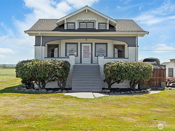 Sweeping Mt. Baker views from this timeless Conway turn-of-the-century home! Brimming with character and thoughtful updates. Bonus Covered RV parking with hookups! Includes 3 bdrms + 4 finished rooms perfect for guests, office, or flex use. Coffered ceilings, oversized dining rm, and a fully finished basement featuring a custom wet bar w/ wine cooler, keg, and ice maker. Updated appliances, A/C, tankless H2O, large laundry room with 2 W/D hookups, and tons of storage throughout. Full-length front porch, 6-person hot tub, and a covered cook space w/deep fryers ready for updates. Perfect for Air B&B Garden space, and a level yard complete the package. This home is truly made for entertaining ask about the hidden step!
