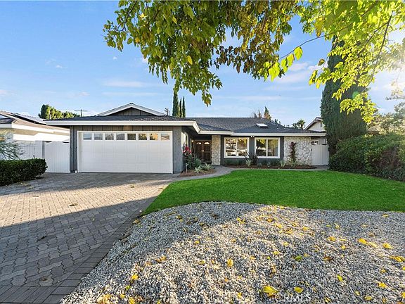 Welcome to a reimagined, completely turnkey haven, nestled in the heart of Granada Hills. Within the highly sought after boundaries of the esteemed Granada Hills Charter High School. This charming residence invites you with its freshly landscaped front yard, paver driveway that leads to a two-car attached garage, providing convenience and ample parking, setting the tone for a warm and inviting ambiance. Step inside to discover the seamless flow of new engineered hardwood floors throughout the entire home, creating a cohesive and timeless appeal. Natural light floods the open- concept living spaces, accentuating the decorative brick fireplaces found in both the family room and living room. The fully remodeled, custom kitchen, is a chef's delight, boasting custom cabinets, generous counter space, abundant storage, a large island, and all new stainless steel appliances. Modern touches include recessed lighting and updated fixtures that enhance the overall aesthetic. Adjacent to the kitchen, a delightful breakfast nook and a formal dining room offer perfect spaces for meals and gatherings. Convenience meets style with an updated powder room located off the separate laundry room. On the opposite wing of the house, four spacious bedrooms await, including a luxurious primary en-suite. Two additional fully updated bathrooms showcase designer tiles, fixtures, and new vanities. The primary en-suite features a large walk-in closet and a beautifully remodeled bathroom with dual sinks, custom vanity and spacious shower with a custom frameless glass door. A sliding glass door from the primary bedroom beckons you to the spacious backyard, covered to provide ample shade. The expansive outdoor area is perfect for family gatherings and provides a delightful space for children and pets to play freely. This home also features presidential shingle roof, central heat, and air conditioning, ensuring comfort and energy efficiency. Don't miss the opportunity to make this Granada Hills gem your own—a perfect blend of modern elegance and classic charm.