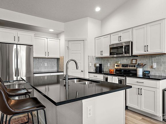 Welcome home. Ideally situated just 10 minutes from downtown Nampa and 18 minutes from Meridian, this home offers peace and quiet while still providing easy access to all the essentials. Featuring a striking 8-foot front door, extra-wide hallways, vaulted ceilings in the great room, a highly sought-after split bedroom design, a NEST thermostat, an abundance of natural light, open space next door, this home truly has it all. The kitchen showcases elegant white cabinets with upgraded handles, stunning quartz countertops, and a full backsplash. With ample outdoor space, it's perfect for hosting summer BBQs, family gatherings, gardening, and enjoying a variety of outdoor activities. BTVAI