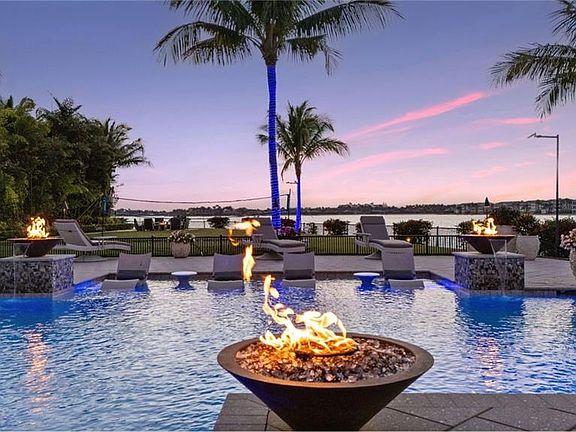Expansive islandPrivate officeSpacious bedroomsFloor-to-ceiling windowsResort-style pool and spaFully equipped summer kitchenWaterfront property