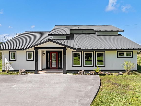 Big Island Farm for sale with Lush Landscaping & Modern Updates. Welcome to 17-4060 South Road, a stunning 5-acre property just outside of Keaau that offers a serene, park-like setting with mature landscaping and fruit trees, all while enjoying the convenience of county water. This well-maintained home has been recently updated with fresh interior and exterior paint, including the roof, and features tile flooring throughout. Step inside to discover an abundance of natural light streaming through large windows, highlighting the open-beam ceilings and spacious layout. The home boasts two inviting living areas plus a sunroom, perfect for relaxing and enjoying the greenery surrounding. A split AC unit in the main living room ensures year-round comfort. Upstairs, the expansive primary suite offers a private setting with a walk-in closet, a large en-suite bathroom featuring a jacuzzi tub, and a lanai overlooking the peaceful views of the beautifully manicured property and Mauna Kea. Outside, enclosed by a full perimeter of fencing you will find the lush grounds which include mature grass, an array of mature fruit trees such as ‘Ulu, loquat, citrus, and coconut, and a thoughtfully cleared landscape with the removal of numerous Albizia trees. With a second gate and access to the end of the property boundary and a prime location, this unique estate is a must-see for those seeking privacy, space, and natural beauty, while being just 10 minutes from Hilo. Grow Food. Raise Animals. Build a Life That Feeds You! Don’t miss this exceptional opportunity! Buyer and buyers agent to verify all information.