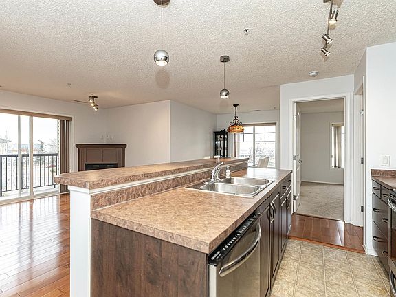 Discover this immaculate and inviting 3rd-floor corner unit in Terra Losa! With 927 sq. ft. of living space, the unit features 2 generously sized bedrooms, 2 bathrooms, and in-suite laundry with 2 Titled parking spaces and 1 Storage Cage (1 surface parking stall #191 & 1 heated underground #76). As you enter the foyer, you'll instantly feel at home. The open-concept kitchen is equipped with custom cabinets and ample counter space, including countertops and an eating bar. The spacious living room opens up to a northwest-facing wraparound balcony with a BBQ gas line, making it perfect for outdoor relaxation. This prime location is only steps from shopping, restaurants, grocery stores, and transit. You’ll also enjoy convenient access to West Edmonton Mall, a beautiful semi-private lake, and the Anthony Henday.