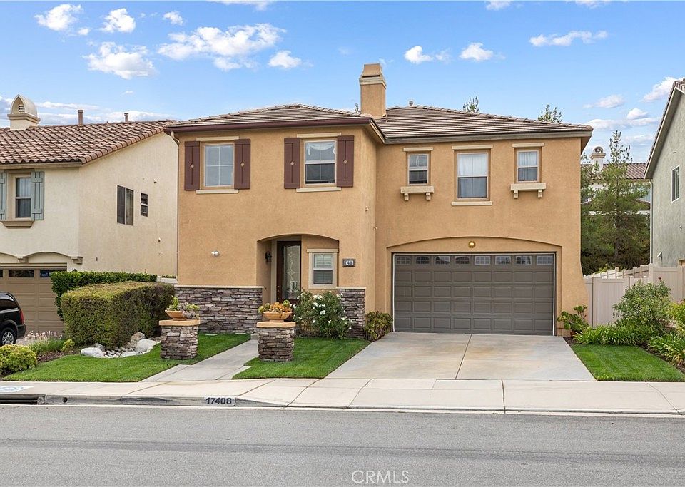 Welcome to your dream home at the Fair Oaks Community in the Santa Clarita area! This 4 bedrooms and 3.5 baths home is one of a kind as it was a model home and it includes all the upgrades a model home will ever have! As you walk in you are welcomed by an open floor plan with soft color choice flooring throughout. The living room features beautiful lighting that carries over to the dining/kitchen area. The kitchen offers beautiful white cabinets with glass to showcase your kitchen treasures with countertops made to pop! You will also find stainless steel appliances and ample storage with direct access to the 2 car garage. The downstairs bedroom features a private full bath perfect for your guests. On the other side of the home you will find the cutest guest bath you will ever see with a perfect touch of blue. Upstairs there is a cozy family or TV room ready for those family movie nights. The master bedroom is huge with crown moulding throughout. It also features a walk in closet, a separate shower and bathtub and dual sinks. The other two bedrooms are great sizes and have their own bathroom. The upstairs laundry room has plenty of space to add storage. The living room, kitchen and upstairs family room are hooked up with surround sound ready for your get togethers. The luscious green backyard is a perfect size with a lovely pergola and outdoor fireplace perfect for relaxation and entertainment. This property offers both comfort and style, making it the perfect place to call home! Easy access to freeways and shopping centers but still far enough to have great quality of life. Call today, this will not last!