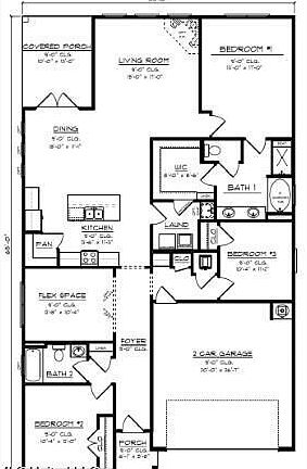 As you enter the home, a short hall on the left leads to a bedroom, linen closet and a full bathroom with vanity and shower/tub combination. As you continue through the foyer there is a flex space that can be utilized as a study. Adjacent to the study is another short hall with a hall closet, access to the garage and entry to another bedroom.
