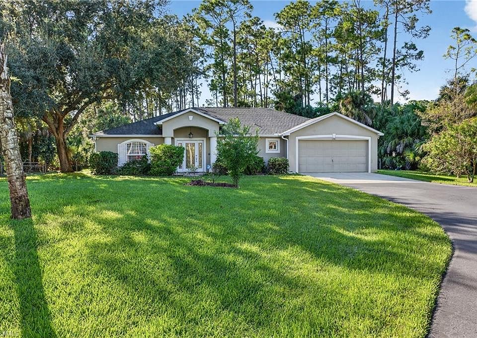 Discover a serene hideaway in Naples where exceptional privacy meets modern luxury on an expansive 2.27-acre estate. Dense vegetation and a mature canopy envelope the home in tranquility, creating your own private sanctuary while remaining conveniently located. The seller has meticulously maintained the grounds, clearing undergrowth throughout the property (2023-2024), trimming the majestic mature oak tree, and removing 18 palmettos and 5 pine trees to optimize views while preserving the serene, secluded atmosphere. Beyond this stunning natural setting lies an extensively renovated home where no expense has been spared. Every major system and surface has been thoughtfully upgraded from 2019-2025, including a new Bryant A/C system (2021), roof replacement (2019), complete electrical panel upgrade (2022), outdoor aeration and water softener system (2023), and stunning 24x24 Italian porcelain tile with satin finish installed diagonally throughout (2021). Both bathrooms were remodeled with premium Schuyler vanities and Kohler fixtures (2022), while the kitchen features undercabinet and recessed ceiling lighting, new baseboards, and a brand-new dishwasher (2025). Hurricane-rated Andersen impact-resistant windows and sliders provide peace of mind, complemented by fresh interior paint (2024), new asphalt driveway with seal coat (2023), updated irrigation with 13 new rotors and controller (2023), custom Elfa closet systems in 5 closets (2023), and thoughtful touches like ceiling fans, updated door levers, and seven sets of new bi-fold doors. This is a truly turnkey opportunity—move right in and enjoy the perfect blend of natural tranquility and modern living!