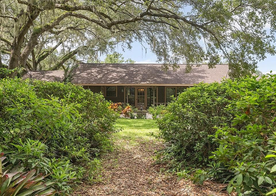 Secluded Country Retreat on 5 Acres in DeLand! Tucked away at the end of a private road, this stunning 3-bedroom, 2.5-bath home offers the serenity of a mountain oasis right in the heart of DeLand. Set on 5 beautifully wooded acres, this unique property blends rustic charm with modern comforts—perfect for those seeking peace, privacy, and space to create. Inside, you'll find a spacious and thoughtfully designed layout featuring: An updated kitchen with granite countertops, custom cabinetry, and stainless-steel appliances, a cozy great room anchored by a gorgeous stone fireplace, separate dining area overlooking a sunken family room—ideal for entertaining, a large master suite with a garden tub, and an inside laundry room for added convenience. Step outside to enjoy the true Florida lifestyle. Relax on the expansive wraparound porch or breezeway as you take in views of native wildlife, including turkeys and deer. Meander through garden walkways shaded by majestic oak trees or simply unwind with your morning coffee or evening drink in complete seclusion. Bonus alert: For hobbyists, entrepreneurs, or those needing extra storage, this property includes a 1,536 sq ft workshop with power and two roll-up doors—offering endless possibilities. Don't miss this rare opportunity to own a one-of-a-kind retreat just minutes from town yet worlds away from the hustle and bustle. Schedule your private tour today—this gem won't last long!