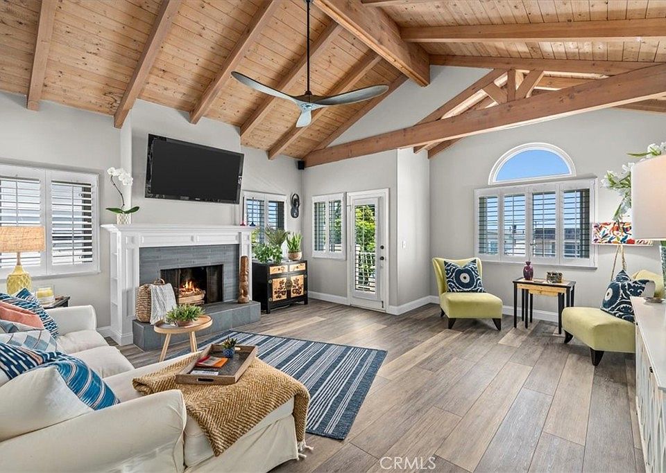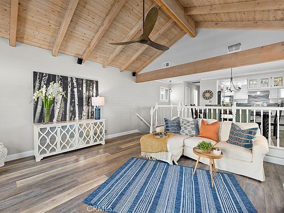 Welcome to this stunning home on one of the best streets and pockets within the Golden Hills! Here, you can enjoy the best of three South Bay beach cities. Upstairs boasts beamed high vaulted ceilings creating a spacious and airy feel along with a fireplace that makes it perfect for entertaining guests or just relaxing with family. Throughout the home you will find newer wide plank wood floors, adding warmth and character to this beautiful space. The tasteful white kitchen features stainless steel appliances and opens up to the dining area and living room, allowing for a great-room feel throughout. Downstairs you access the backyard and two additional bedrooms that share a beautifully updated bathroom. The house has central air conditioning to help relax during those handful of hot days.