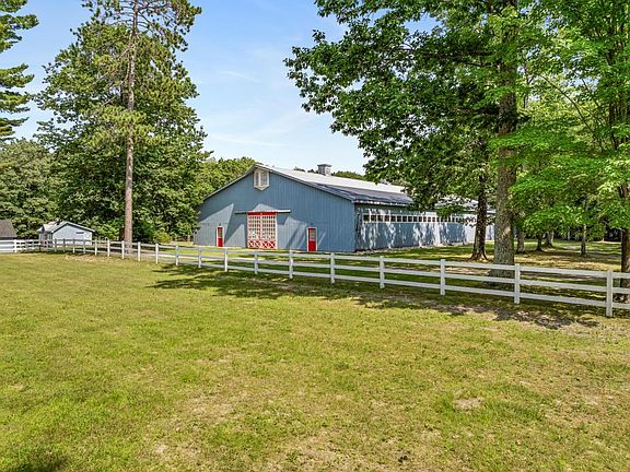 1741 Chippewa Beach Rd in Indian River, Michigan, is a 31.9-acre estate offering privacy, accessibility, and versatility. Just minutes from Indian River and surrounded by Northern Michigan's natural beauty and recreation, this property is a serene retreat. The 3,800 sqft main residence has four spacious bedrooms, providing a comfortable escape. The estate features seven outbuildings, including an 11,000 sqft indoor arena perfect for equestrian activities, events, or creative use. Additional amenities include a 6,720 sqft building, a detached garage, covered storage, and a helicopter hangar with a private landing pad. Explore the potential of this extraordinary estate—schedule a tour today.