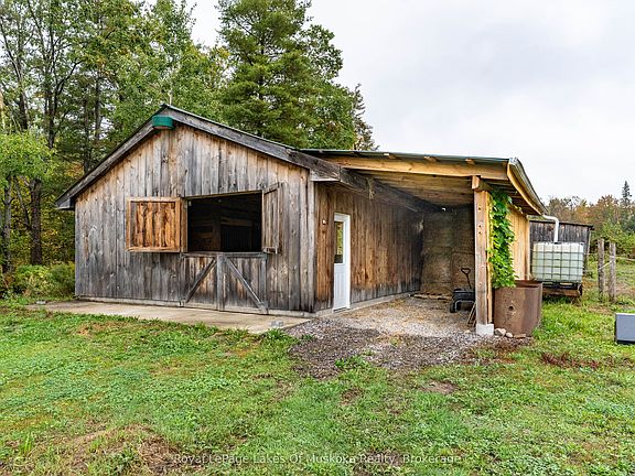 Calling all hobby farmers and homesteaders! Offered is a great opportunity to plant your roots close to town. Over 4 acres featuring a partially renovated raised bungalow, a large and well set up shop, a two stall horse barn, a chicken coop, small pond and excellent privacy. Move right into this 2 bed, 2 bath home and add your own flair by finishing the walkout basement. Plenty of work has been done recently on the home including a new breaker panel, newer windows, hot water tank, renovated bathrooms, propane furnace, decks, pellet stove and more! Outside you'll find a 36'x56' shop with 16' ceilings, heated floors and a car lift. The shop has a timber framed partially finished mezzanine for storage and great built in storage cabinets. The property is fairly level, has a large fenced paddock, raised garden beds, a homemade wood fired cold smoker and great landscaping. Well located only 10 mins from Gravenhurst on sought after Doe Lake Road. This is the whole package. Call now.