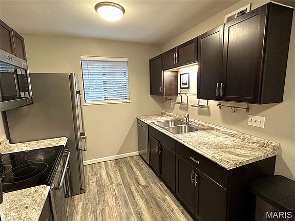 This Lake St Louis condo is perfectly located with LSLCA lake amenities! This affordable condo is less than renting! 2-bedroom 1 bath condo has newer kitchen cabinets, stainless appliances, built-in microwave, refrigerator and newer countertops. All the flooring is newer luxury vinyl plank. In unit laundry with washer and dryer included. The unit has a storage closet located outside the front door along with 1 assigned parking spot. The pool is very close by. Mystic Village Condo Owners also have access to Lake St Louis, Lake St. Louise, the CA Clubhouse, pool, tennis courts, 9-hole golf course, beach, exercise room and more! Visit lslca.com for all amenities. There is a monthly condo fee of $271.14 per month and LSLCA annual fee of $650. Easy access to shopping, dining, and highways.