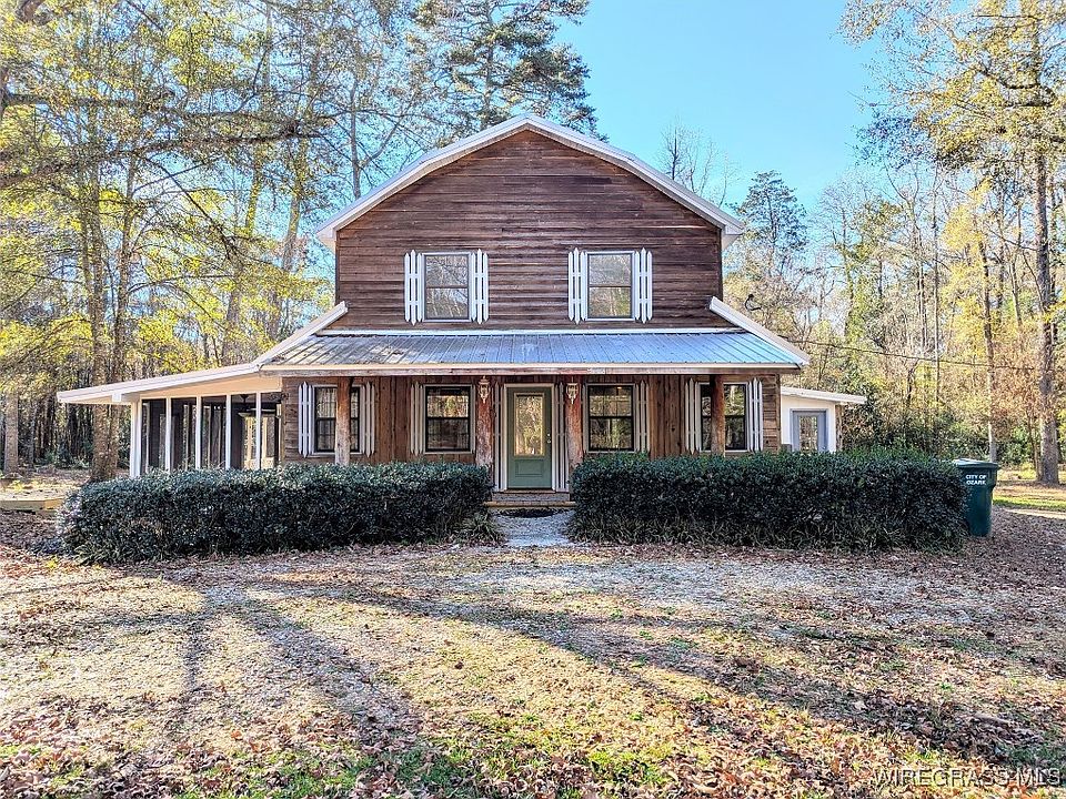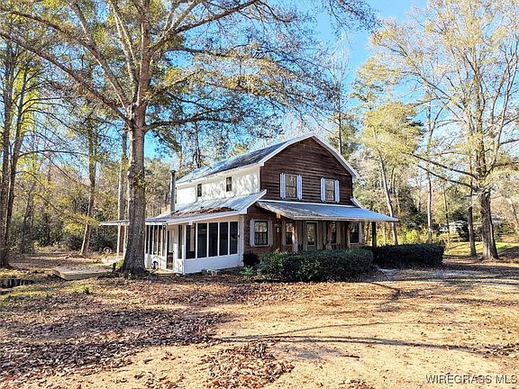 Experience the beauty, peace, and freedom of country living at 1741 Lakeview Drive in Ozark, Alabama. This is a stunning, approx. 10-acre retreat tucked away at the end of a quiet, dead-end road. Just minutes from all of Ozark's many amenities, this spacious 4BR, 3.5BA home sits on three parcels and offers wooded privacy, a pond with a dock, and land perfect for camping, gardening, outdoor recreation, and incredible wildlife viewing. The home feels like a large, warm, inviting lodge with cedar beam accents, updated flooring, and a cozy living room anchored by a delightful fireplace. The charming kitchen with stainless steel appliances opens to a dining area and a bright sunroom overlooking the property. Metal roof installed in 2023. HVAC in 2021. Enjoy both an enclosed patio and an open patio; both are ideal for gatherings, grilling, or quiet evenings outdoors. A downstairs master option features a walk-in closet and a tiled shower, while the true master suite upstairs boasts its own full bath and a brand-new private balcony and deck with sweeping views of the pond and woods. Two additional bedrooms and a full bath complete the upper level. Relax on the full-length front porch or the wraparound rear porch, explore your acreage, or enjoy the powered workshop, storage building, and chicken coop. Whether you dream of homesteading, hunting, fishing, or simply having room to roam, this property delivers unmatched value and endless possibilities. This is the kind of property you have to see in person!
